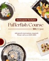 日本で最も人気の高い高級食材「ふぐ」を、アンカーポ イント店限定でご提供!コリコリ食感の ふぐ皮、とろける お刺身、香ばしい 炙り 、サクサクの 唐揚げまで——本場の味わいを気軽にお楽 しみいただけます。🌊...
