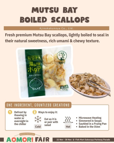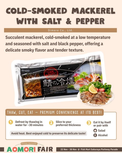 人気の海鮮アイテムが今だけ勢揃い!🧊 鯖の冷燻L🧂 鯖の冷燻ソルト&ペッパー🦪 旨ゆで湯上り帆立🍲 味溢さば味噌煮🌊 三陸ブランチングウニ🐟 ひとくちぶり照り煮⏰ 青森フェア期間限定:11月22日〜30日📍 パークウェイパレード店