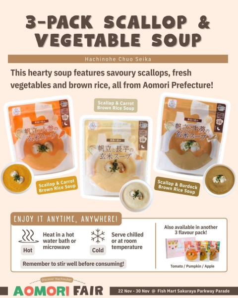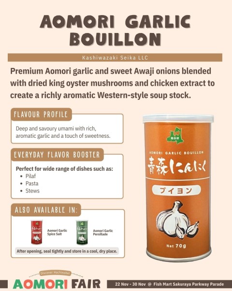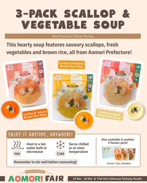 手軽に作れて、美味しさしっかり。青森素材の便利フードが新登場!🍲 青森の恵み 帆立と野菜の玄米スープ(長芋・人参・ごぼう)三種セット🍲 青森の恵み 帆立と野菜の玄米スープ(南瓜・トマト・りんご)三種セット🧄 青森の味をプラスする調味料:⚫ 熟成黒にんにくペースト🌿 青森にんにく ペルシャード🧂 青森にんにく スパイスソルト🍄 青森にんにく ブイヨン⏰ 青森フェア期間限定:11月22日〜30日📍 パークウェイパレード店